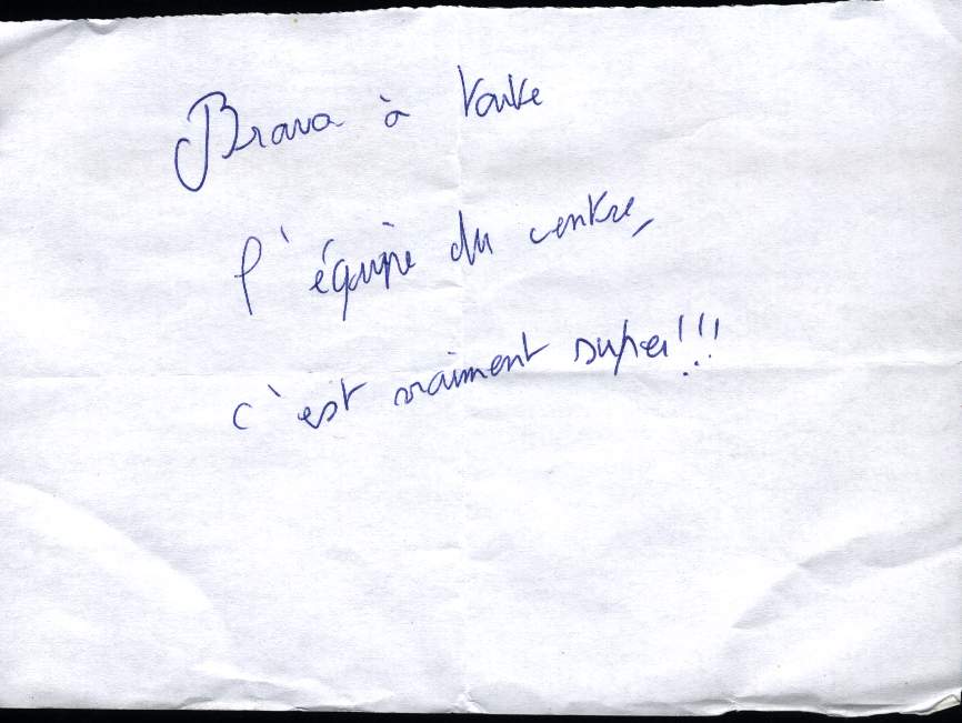 エチエンヌが帰って来て、チームの皆さんにお礼を言いたくてメールしました。